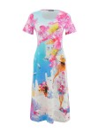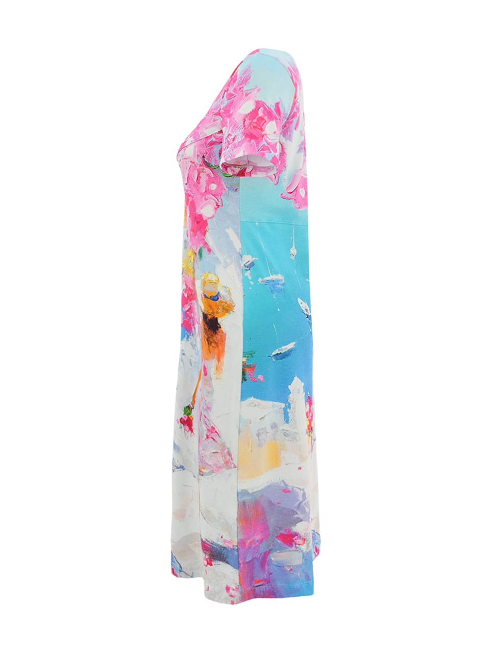 Dolcezza, przepiękna, letnia sukienka "Summer in Santorini 26605", wykonana w 95% z bawełny i 5% elastanu. Dekolt półokrągły, krótki rękawek, długość za kolano. Lekka, zwiewna i bardzo komfortowa. Idealna na gorące, letnie dni.