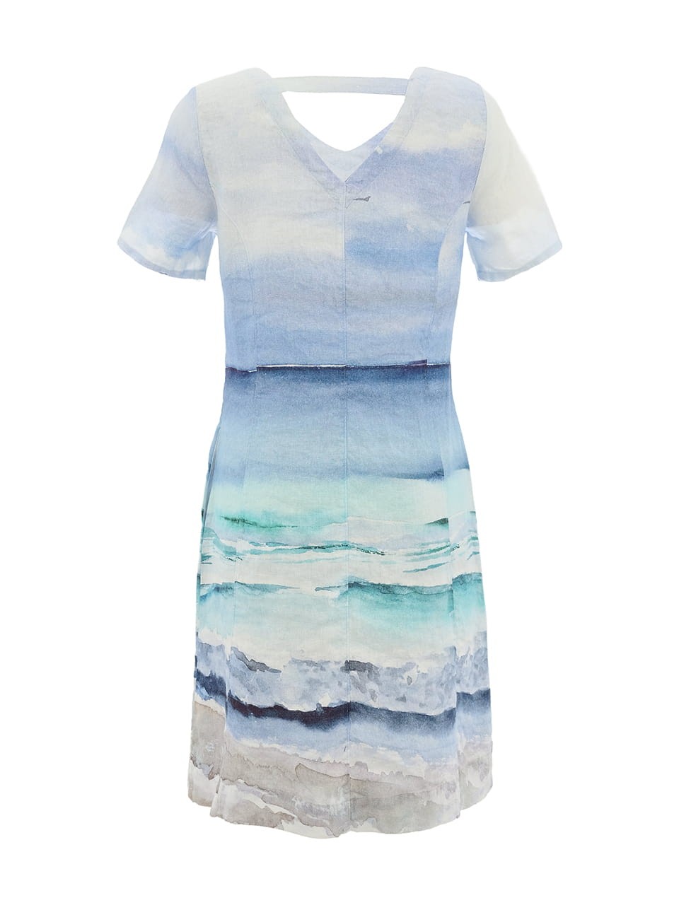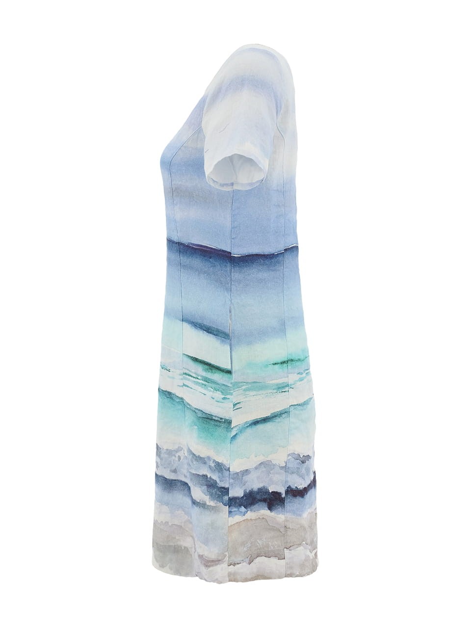 Dolcezza Sukienka lniana z motywem morskim z rękawkiem 26617