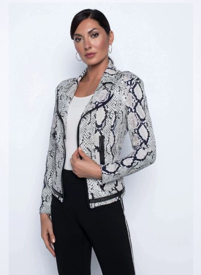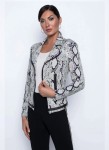 Frank Lyman, krótka efektowna ramoneska w zwierzęcy print wykończona ozdobnymi zamkami, zapinana na kryty haczyk. Miękka tkanina, taliowany krój, doskonale podkreślą sylwetkę.