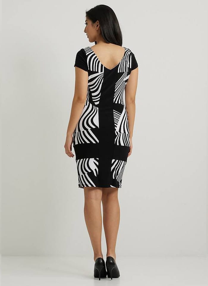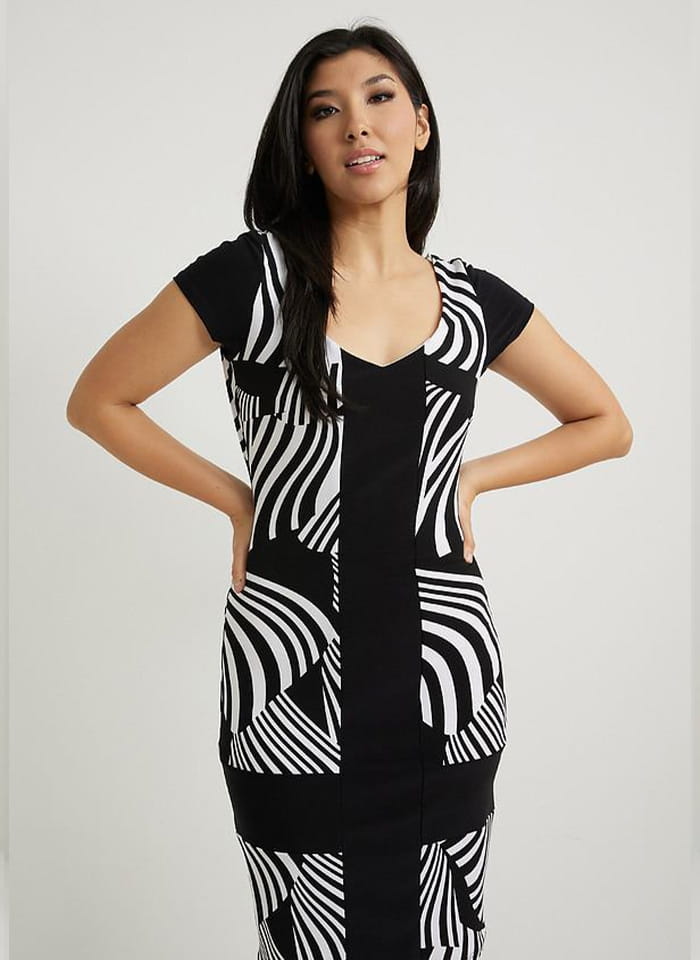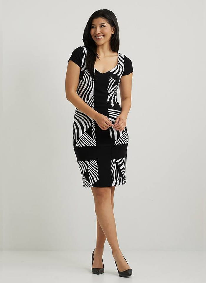 Joseph Ribkoff, Czarno - biała sukienka z krótkim rękawem.