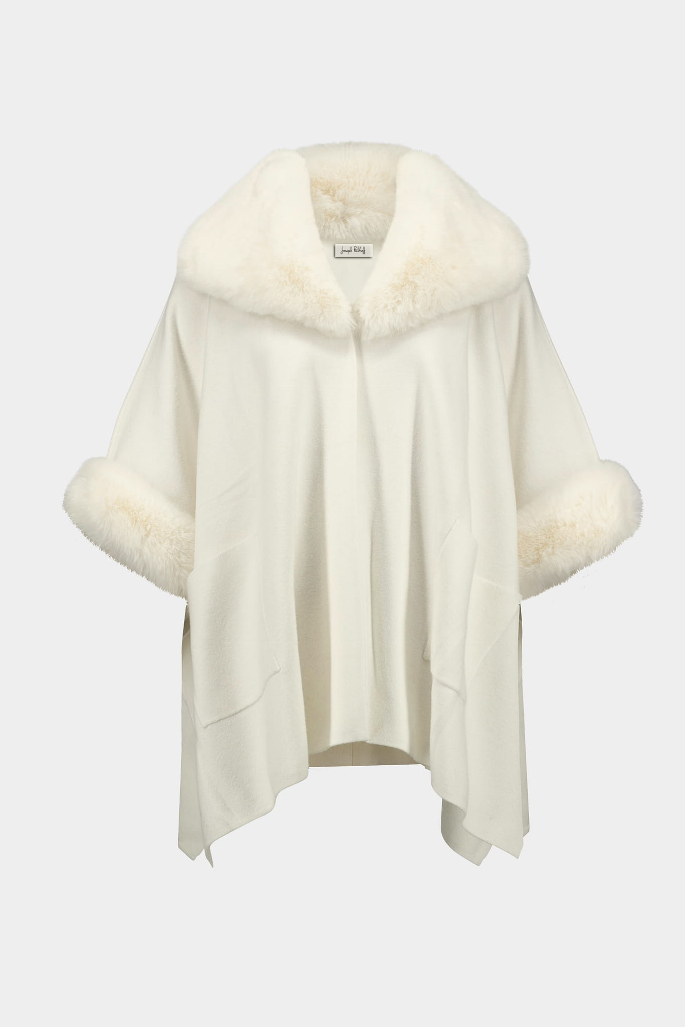 Joseph Ribkoff 243930 stylowe, kremowe ponczo z futerkiem