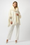Joseph Ribkoff 243930 kremowe ponczo zdobione futerkiem na mankietach i kołnierzu