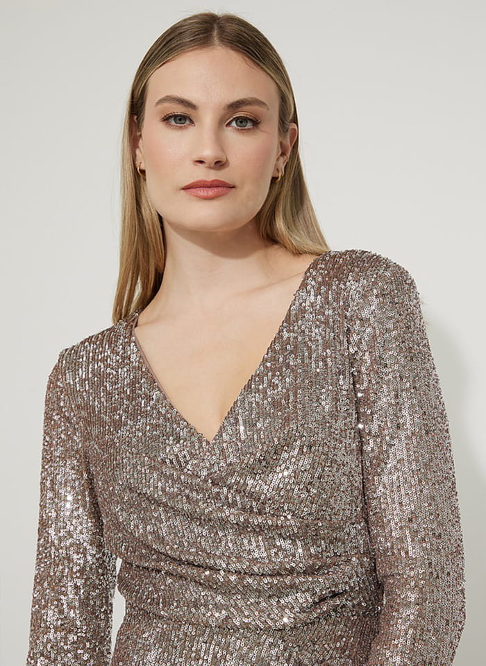 Joseph Ribkoff 223720 Cekinowa, połyskująca sukienka z długim rękawem.