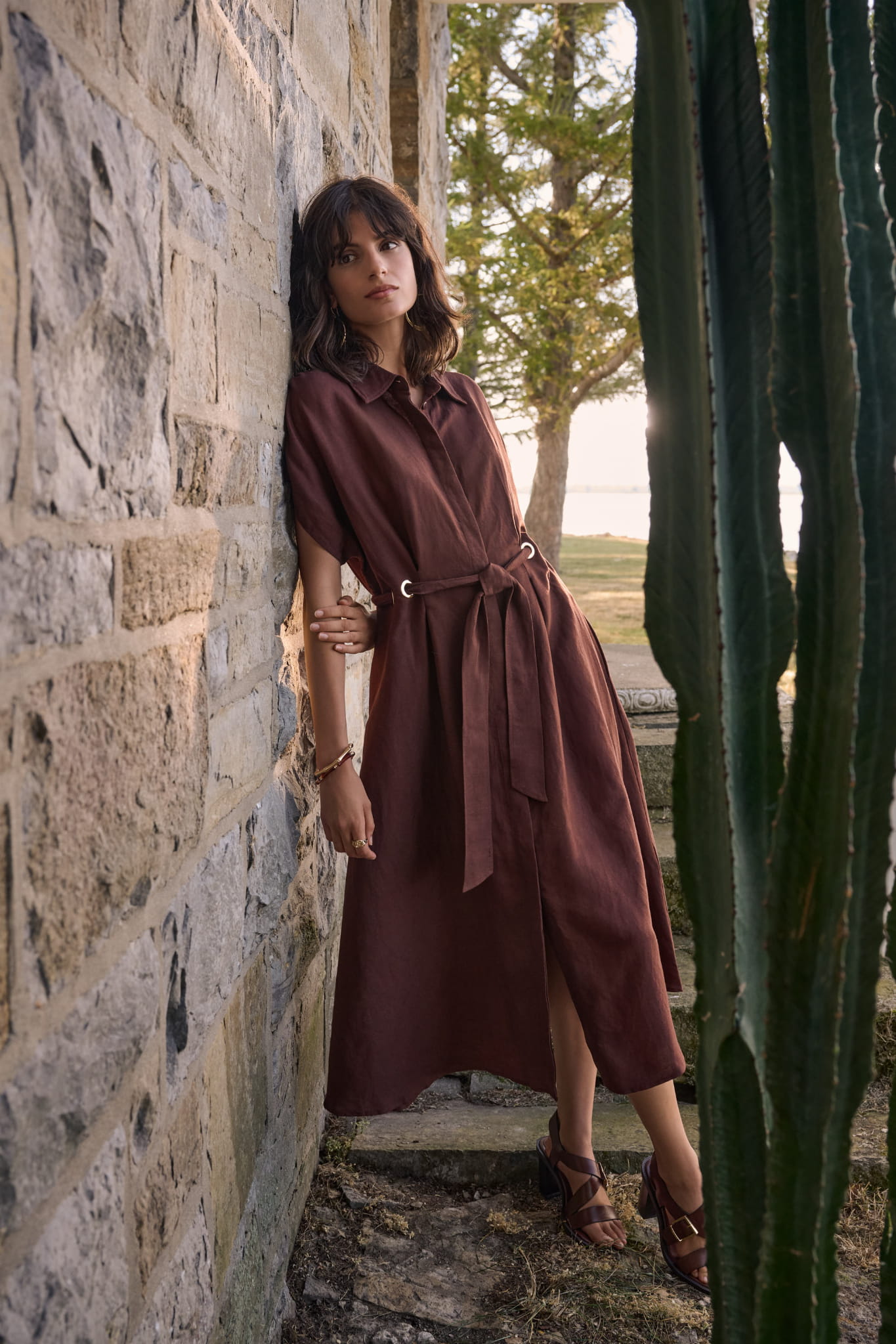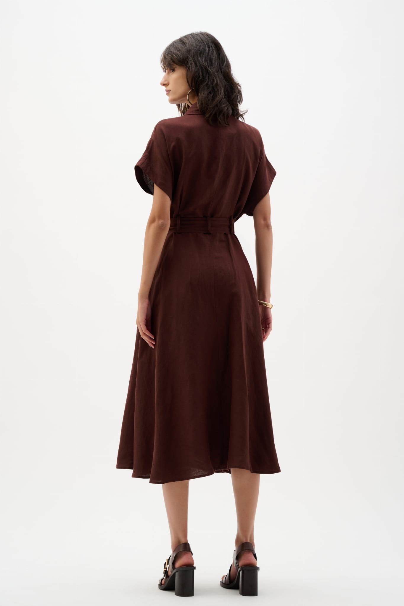 Joseph Ribkoff 262907 Stylowa, lniana, sukienka wiązana w pasie w kolorze gorzkiej czekolady