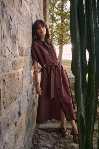 Joseph Ribkoff 262907 Lniana, czekoladowa sukienka wiązana w pasie. Długość za kolano, z kołnierzykiem i krótkim rękawem. Głęboki kolor gorzkiej czekolady nadaje jej klasy i stylu. Fason luźny, wiązana w pasie i rozkloszowana do dołu. Świetnej jakości tkanina sprawi, że będziesz wyglądać pięknie i stylowo, i jednocześnie będziesz się czuła swobodnie i komfortowo.