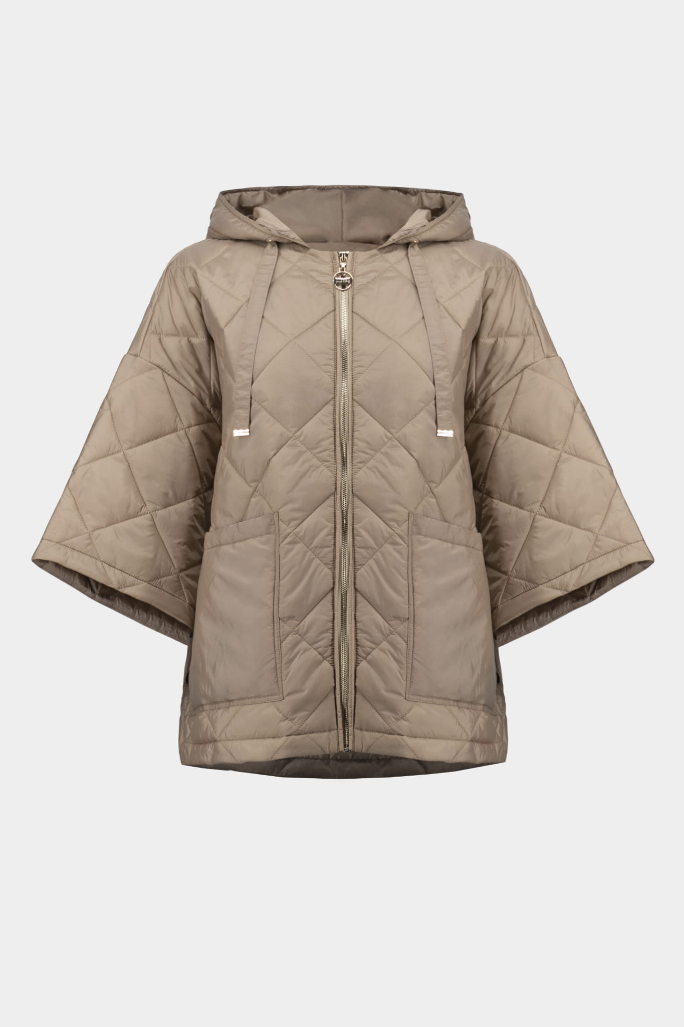 Joseph Ribkoff 254914 Piękna kurtka beżowa z kapturem, pikowana. Szeroki rękaw o długości 3/4, duże kieszenie z przodu oraz elegancki, złoty zamek. Nowoczesny look, szyk, klasa i elegancja. Kurteczka jest lekka i bardzo wygodna, jednocześnie ciepła. Idealnie leży i prezentuje się na Paniach w każdym rozmiarze. Świetna do stylizacji jesienno-zimowych.