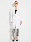 Joseph Ribkoff 223958 Długi, biały dzianinowy płaszcz zapinany na złoty guzik.