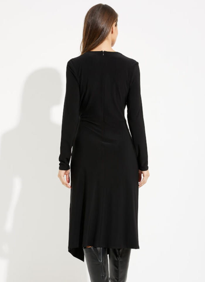 Joseph Ribkoff czarna sukienka midi z długim rękawem.