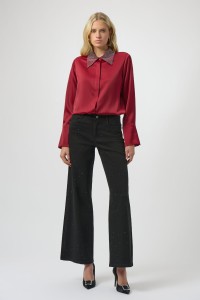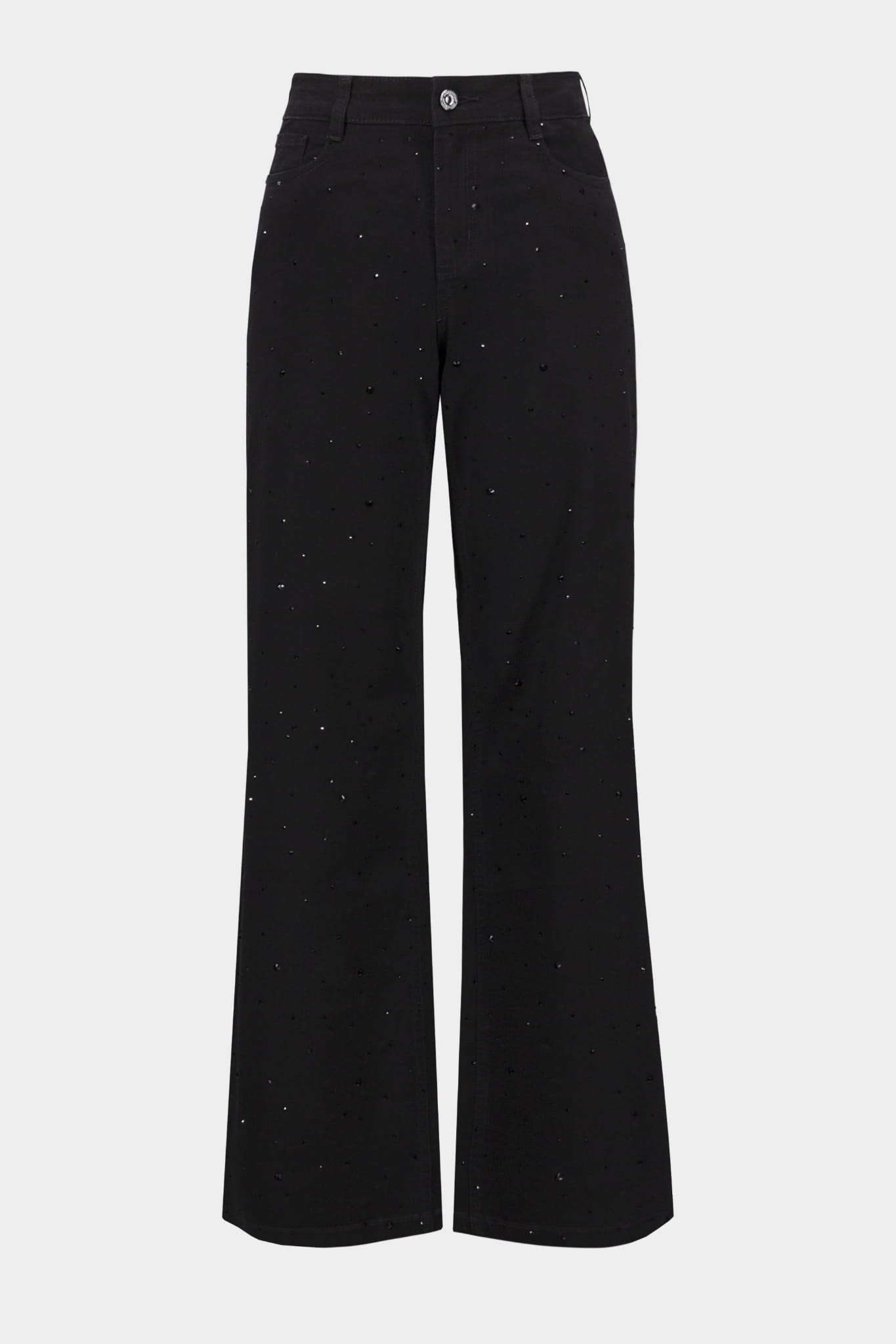 Joseph Ribkoff 254962 Wyjątkowe, czarne spodnie z szeroką nogawką typu jeans zdobione cyrkoniami.