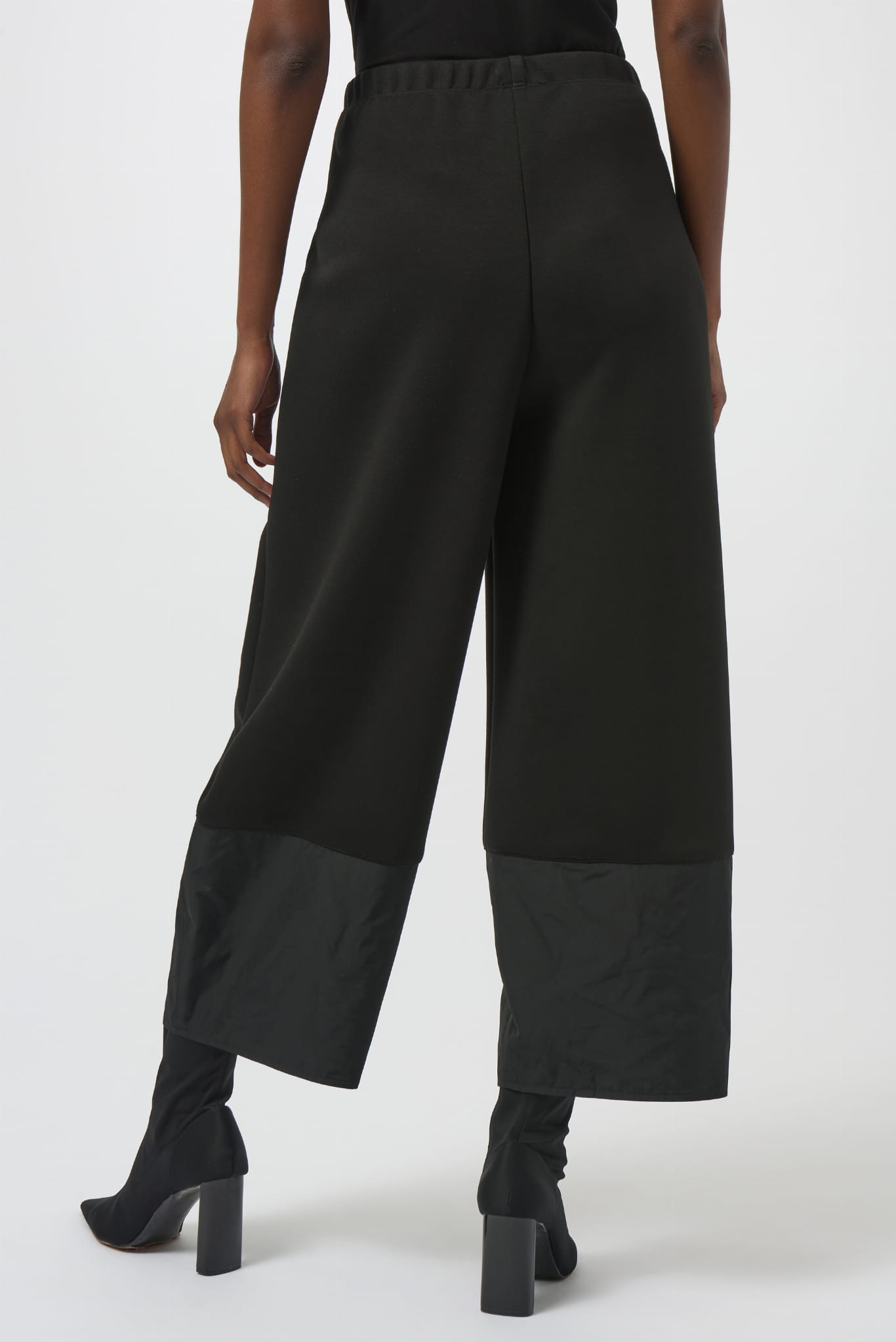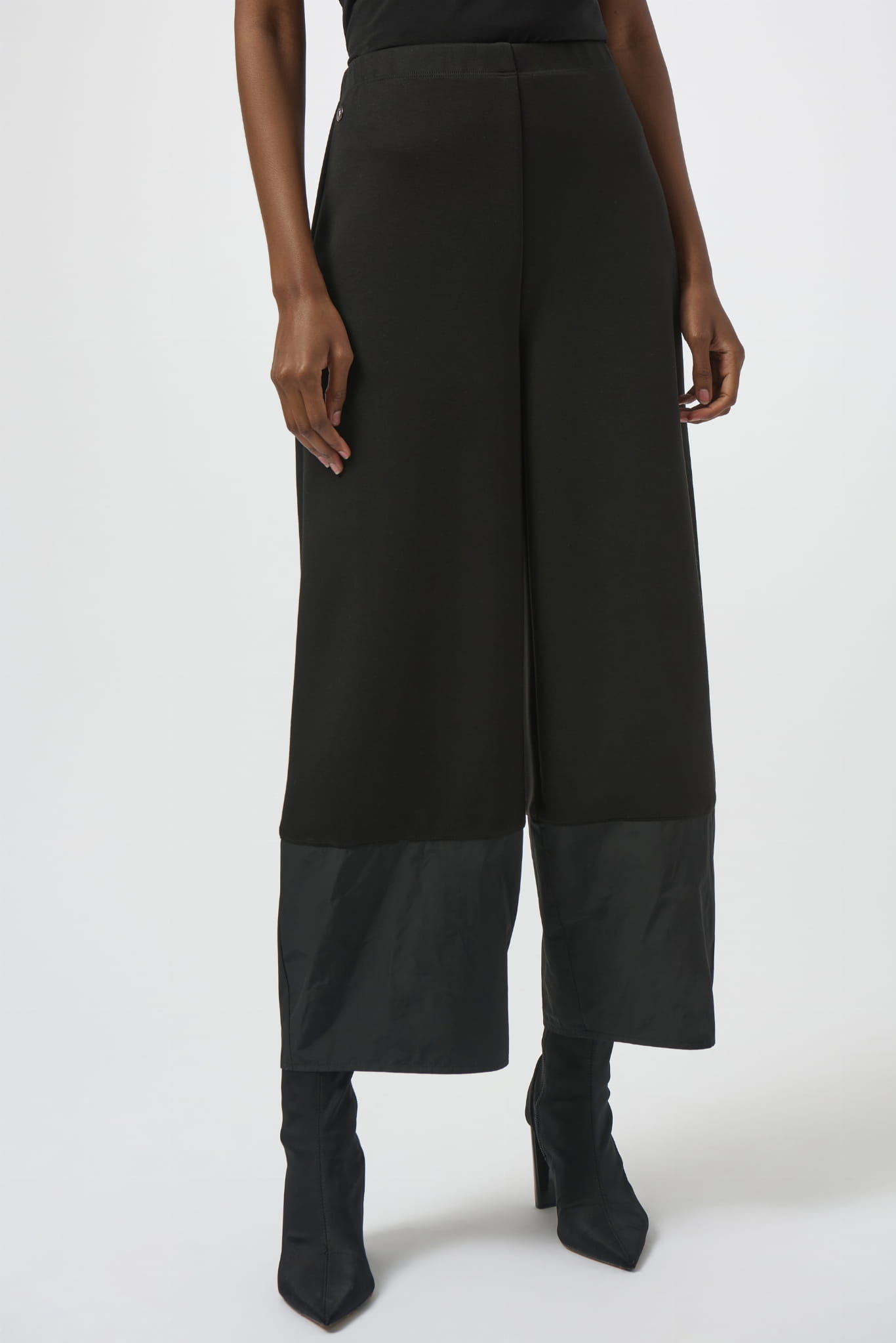 Joseph Ribkoff 254012 Czarne spodnie z szeroką nogawką zdobioną taftą.