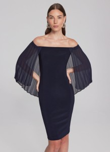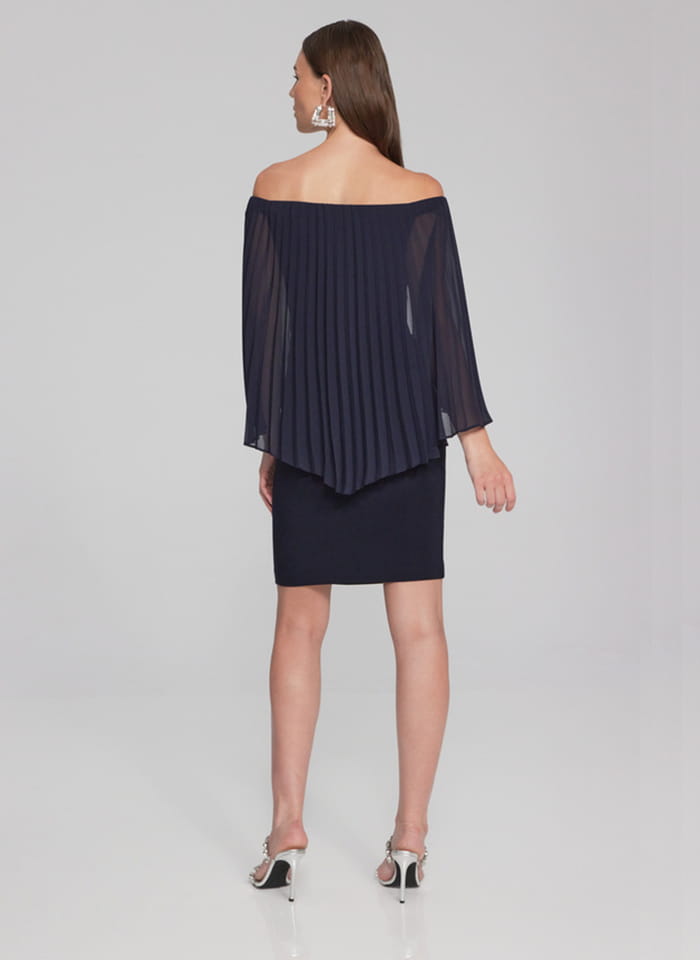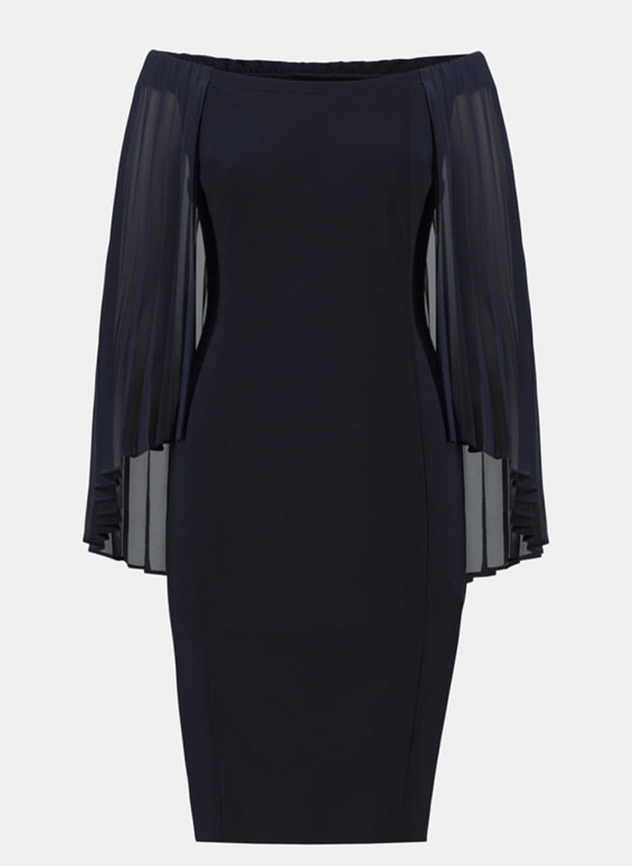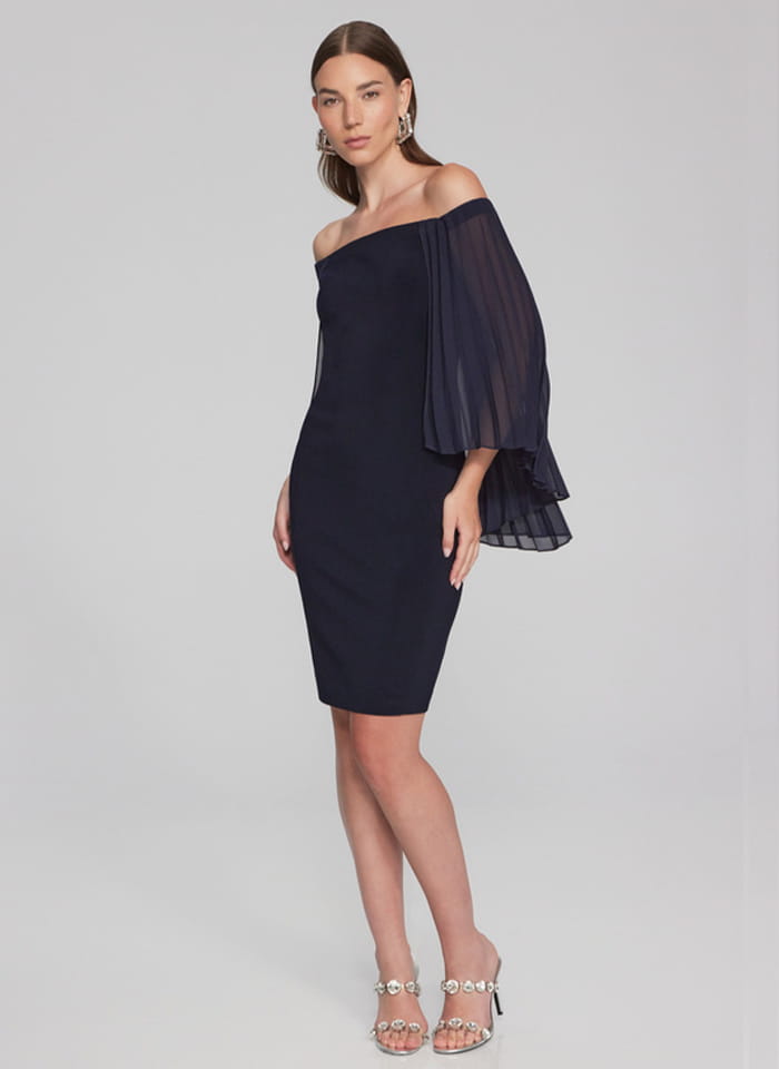 Joseph Ribkoff granatowa sukienka z odkrytymi ramionami i rękawem w plisy 241781