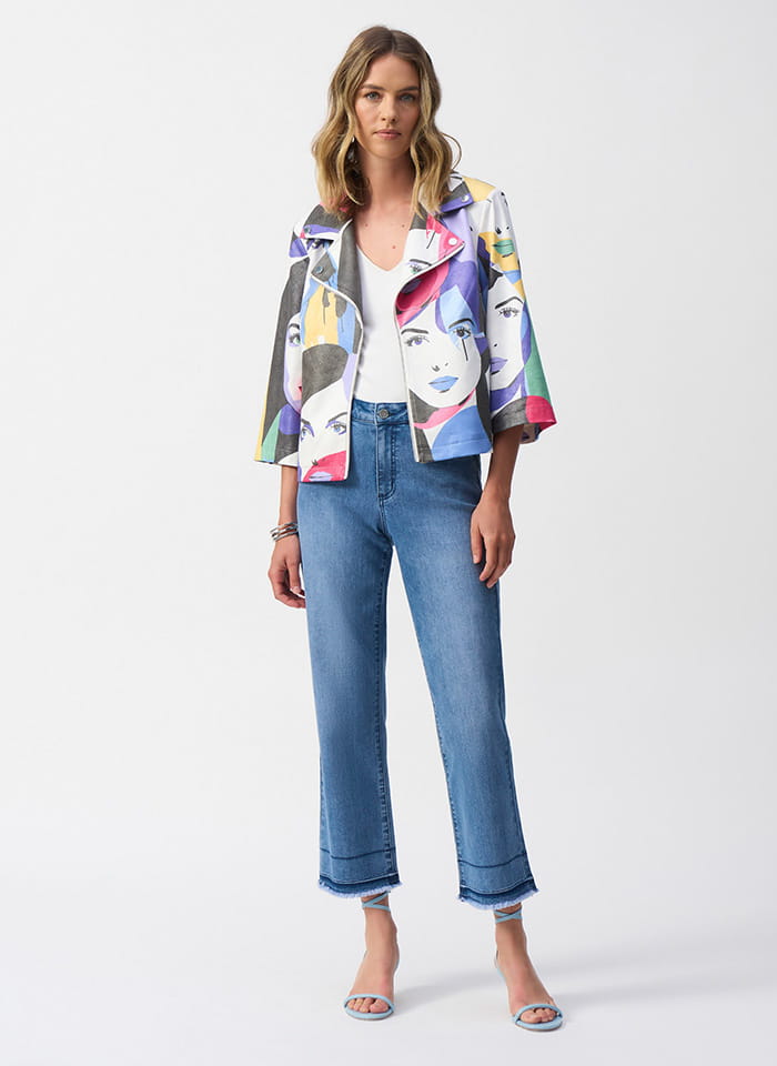 Joseph Ribkoff 251909 Kolorowa ramoneska z nowoczesnym printem z rękawem 3/4