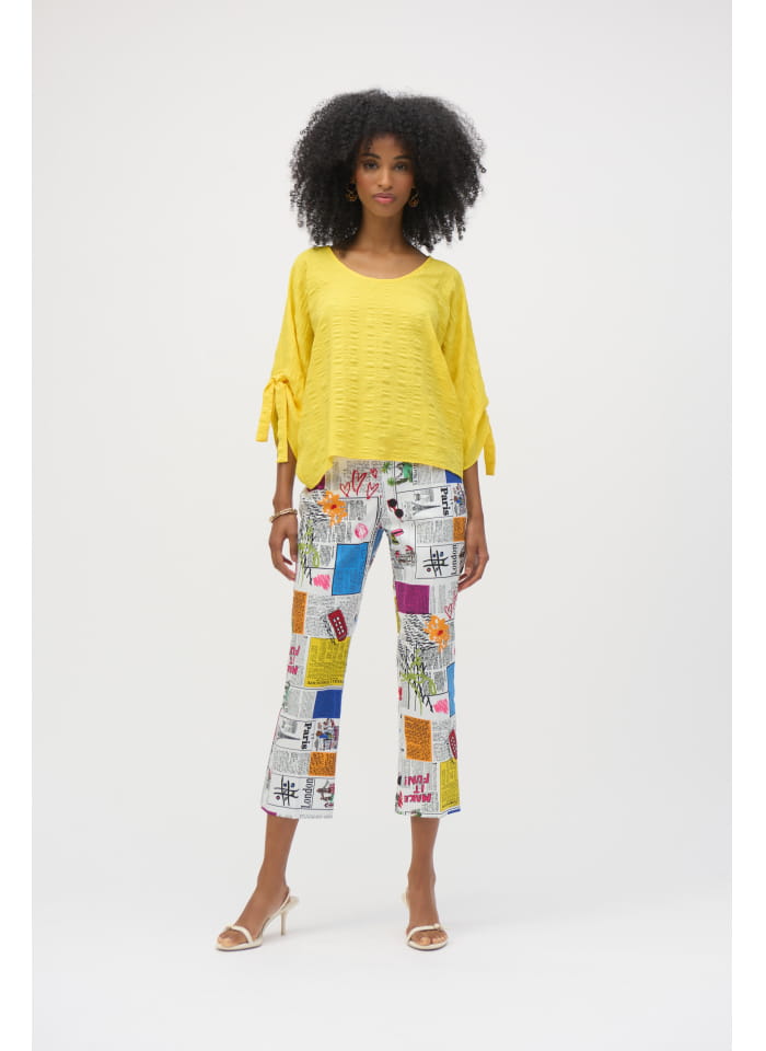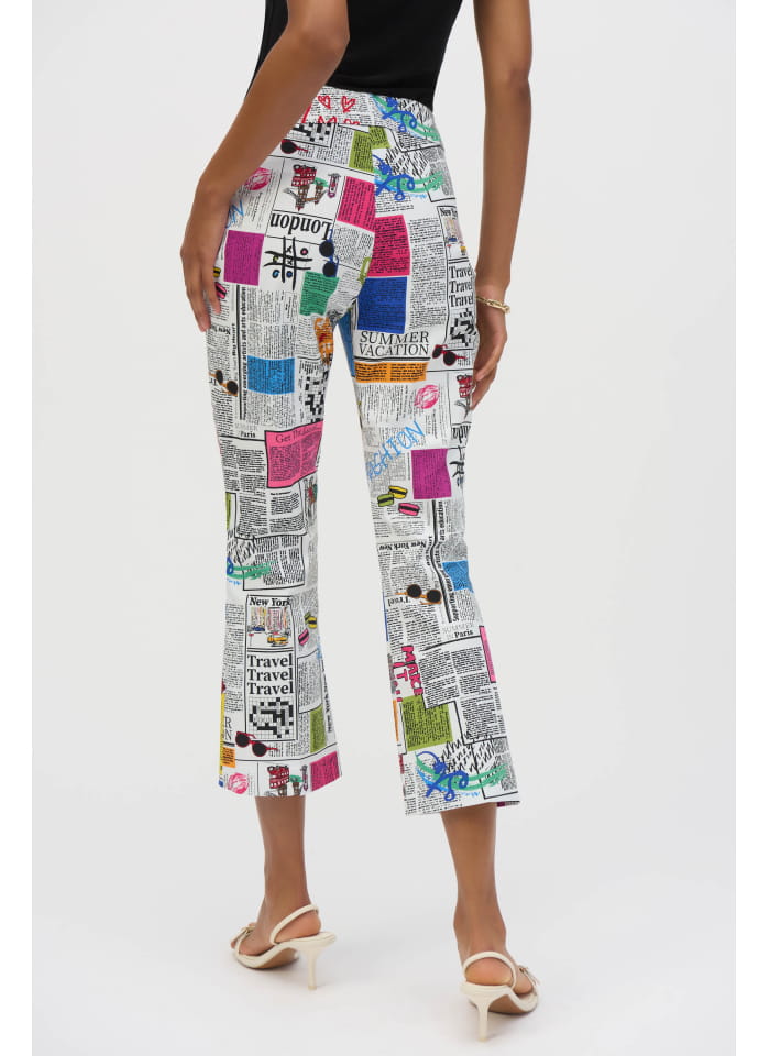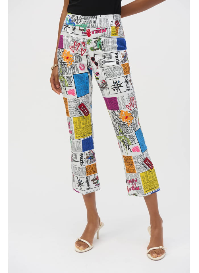 Joseph Ribkoff 252047 Spodnie z motywem gazety, hit sezonu. Świetny fason idealnie pasuje w zestawie z marynarką kod produktu 252088.