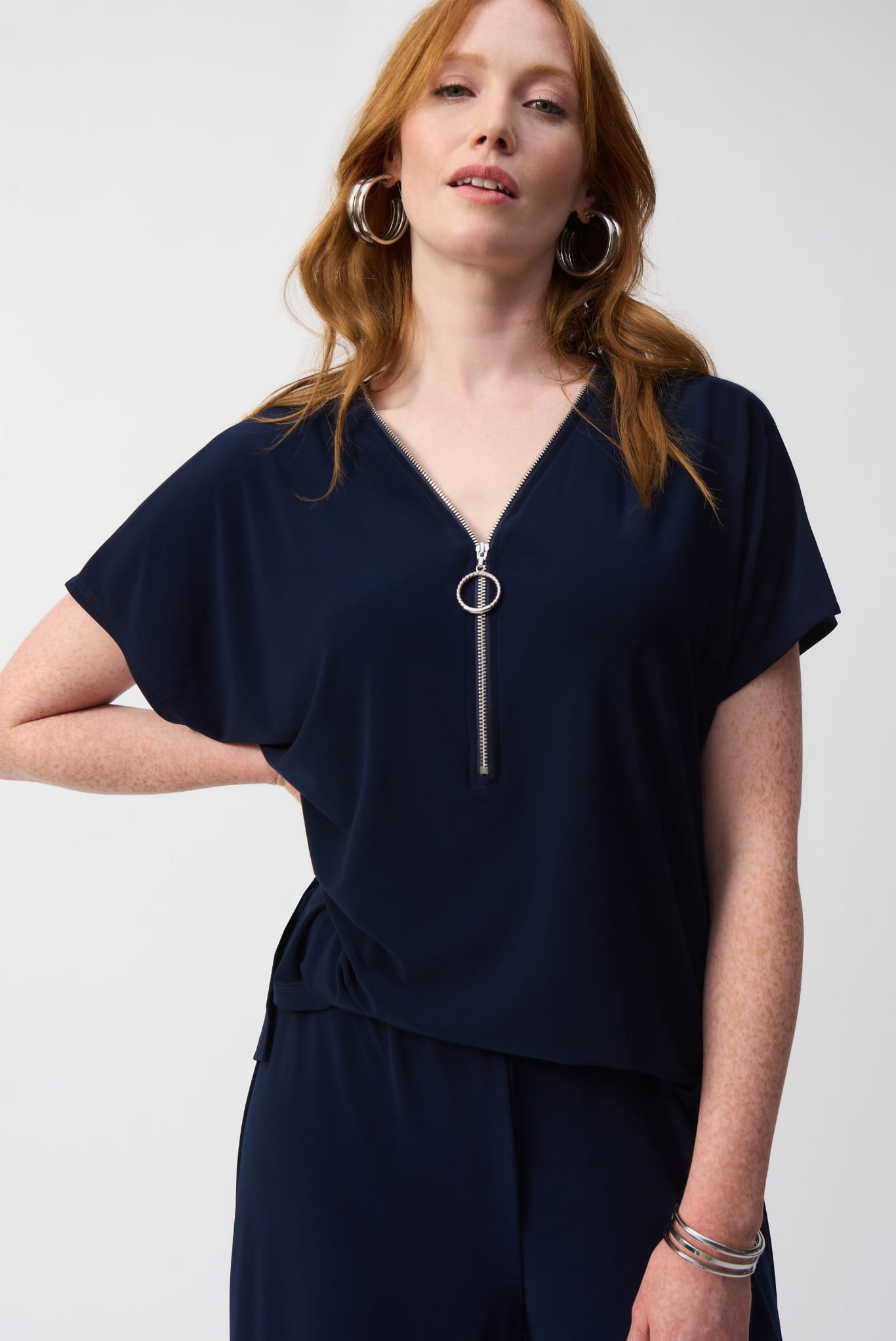 Joseph Ribkoff, Kombinezon z krótkim rękawem, zdobiony zameczkiem, 2 kolory czarny i granat.