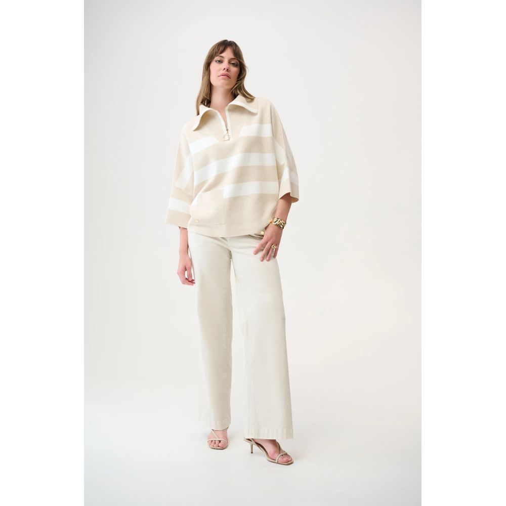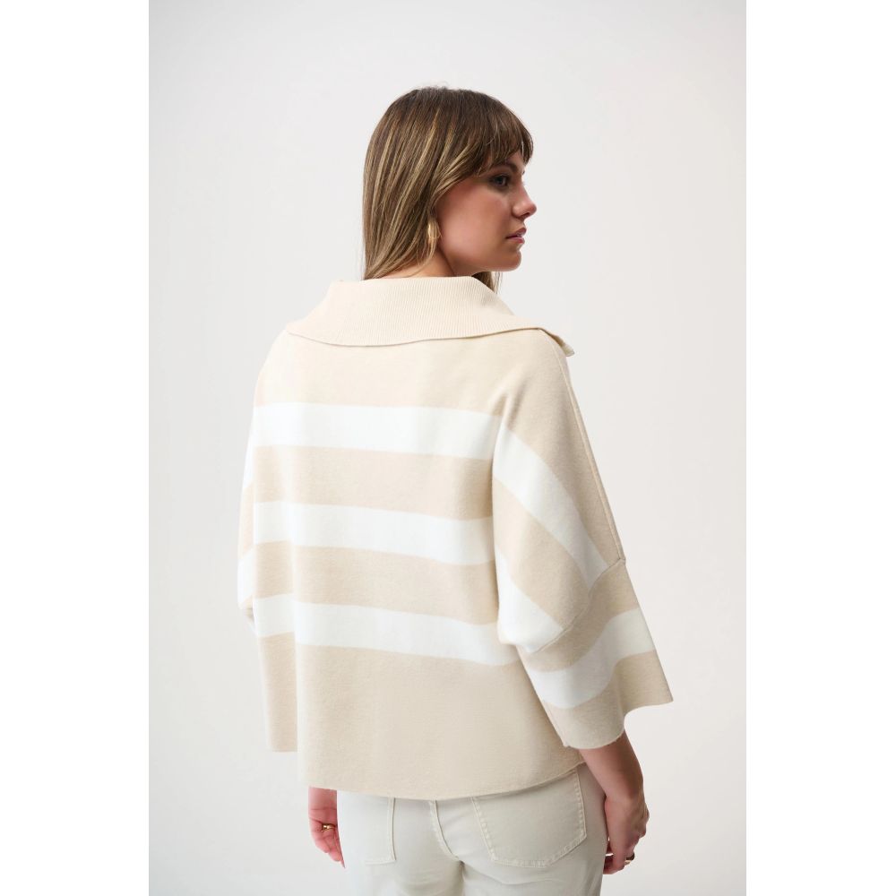 Joseph Ribkoff 261983 Beżowy lub niebieski, pudełkowy sweter w białe pasy.