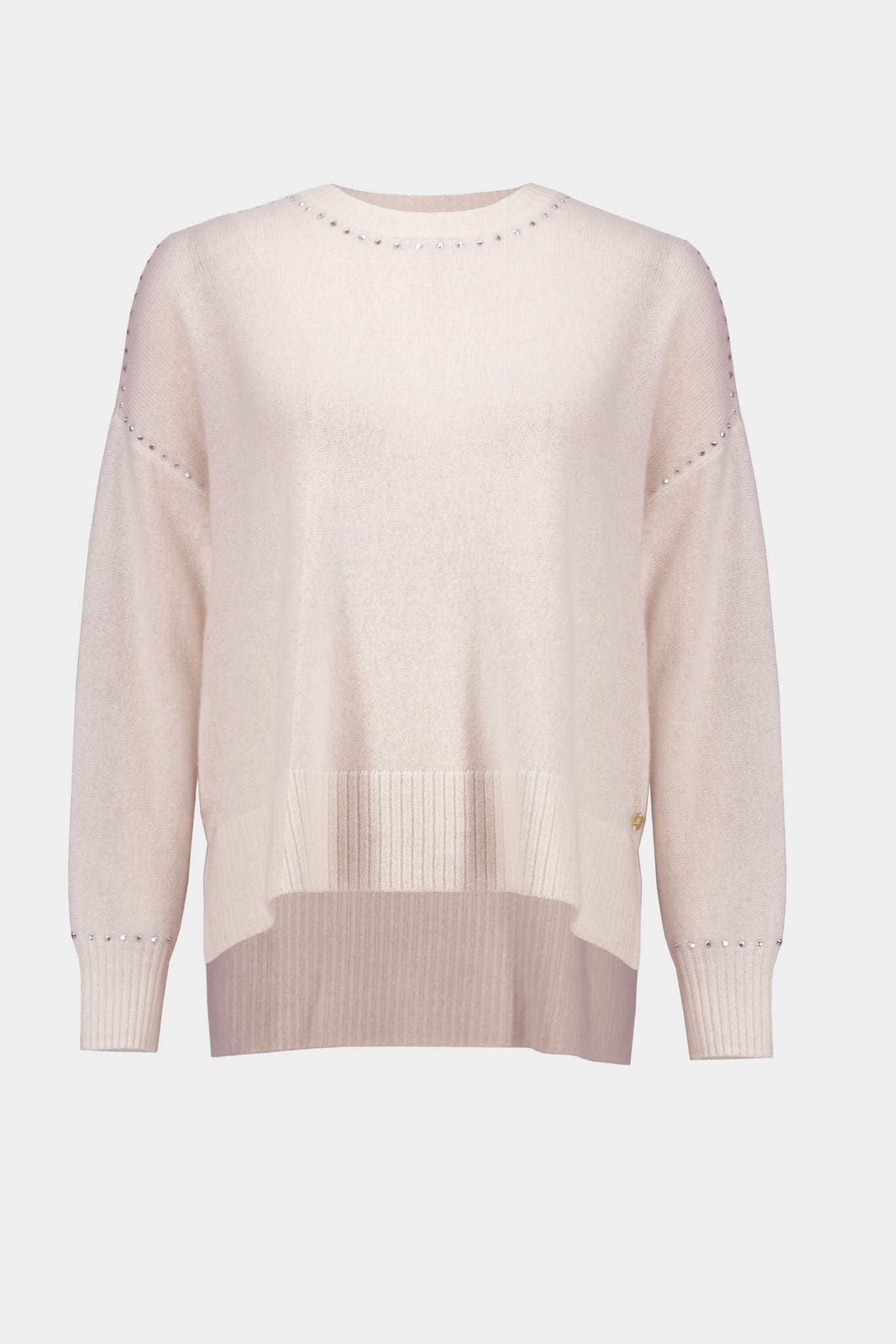 Joseph Ribkoff 253980 różowy sweter kaszmirowy subtelnie zdobiony cyrkoniami. Wykonany jest w całości z kaszmiru klasy A. Delikatny różowy odcień nadaje mu lekkości i świeżości. Posiada prosty krój z okrągłym dekoltem, długimi rękawami i rozcięciami po bokach. Idealny zarówno do codziennych, jak i eleganckich stylizacji, nada nowoczesny a jednocześnie bardzo stylowy look Twoim stylizacjom. Jest Lekki, milutki i bardzo komfortowy, podaruj sobie odrobinę luksusu, niech Cię otuli w te chłodne dni.