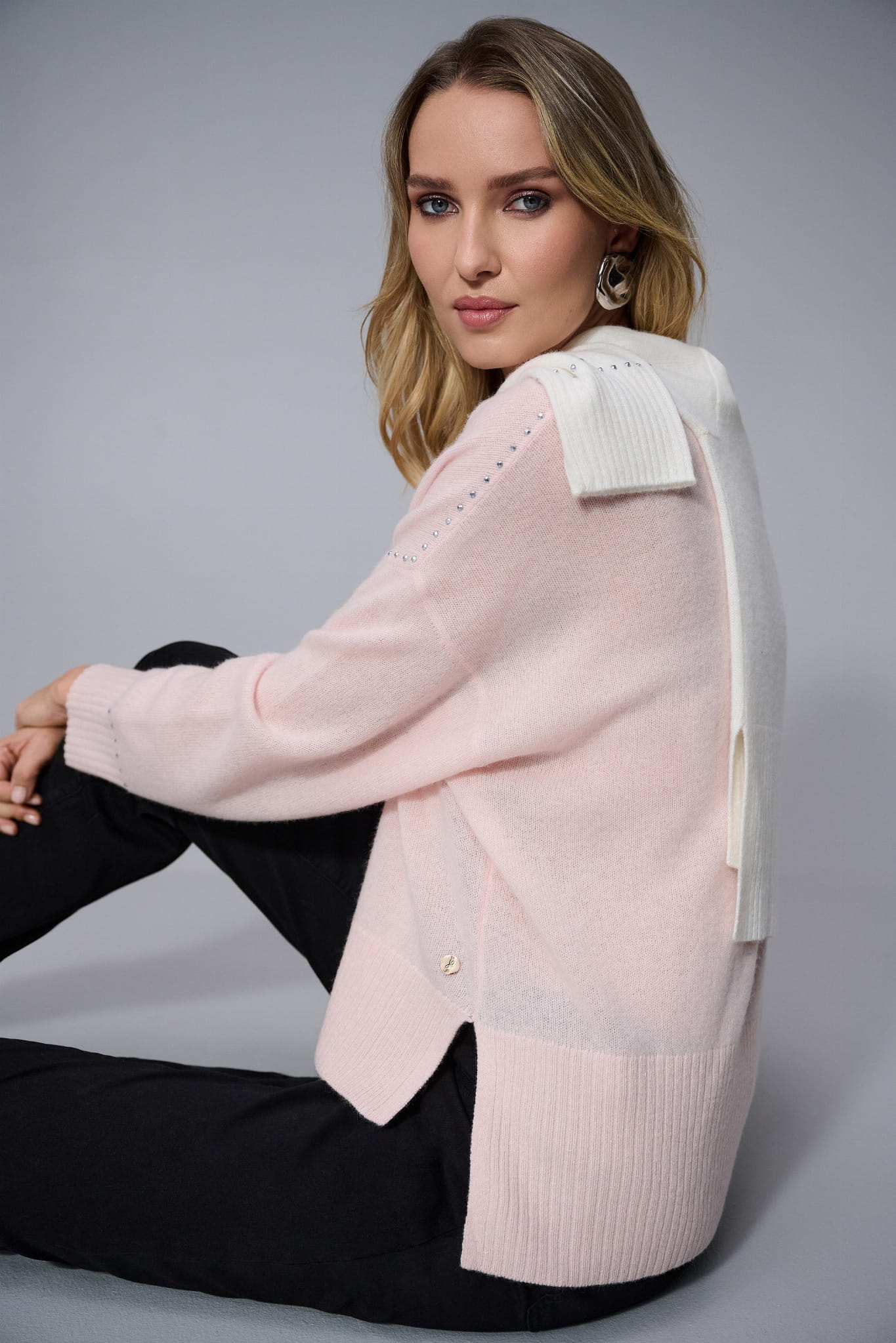 Joseph Ribkoff 253980 różowy sweter kaszmirowy subtelnie zdobiony cyrkoniami.