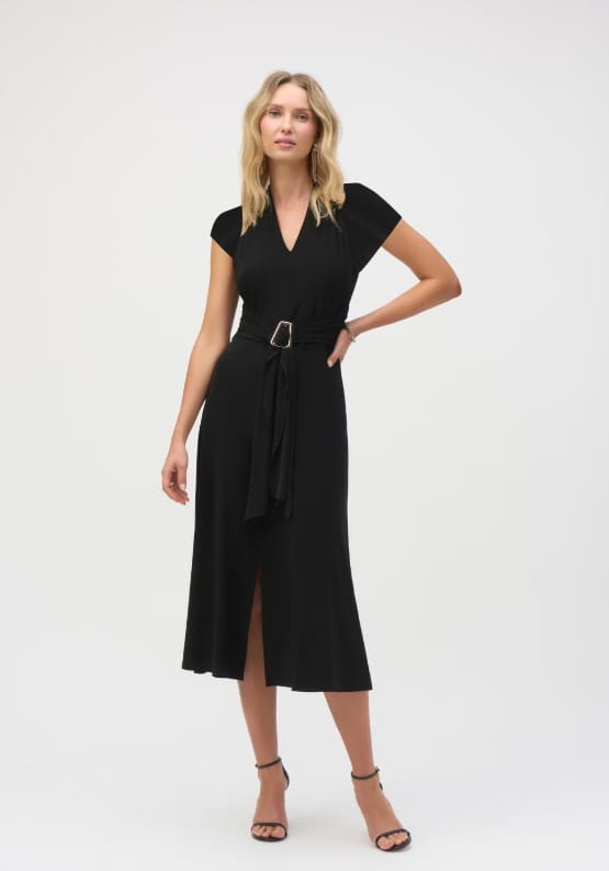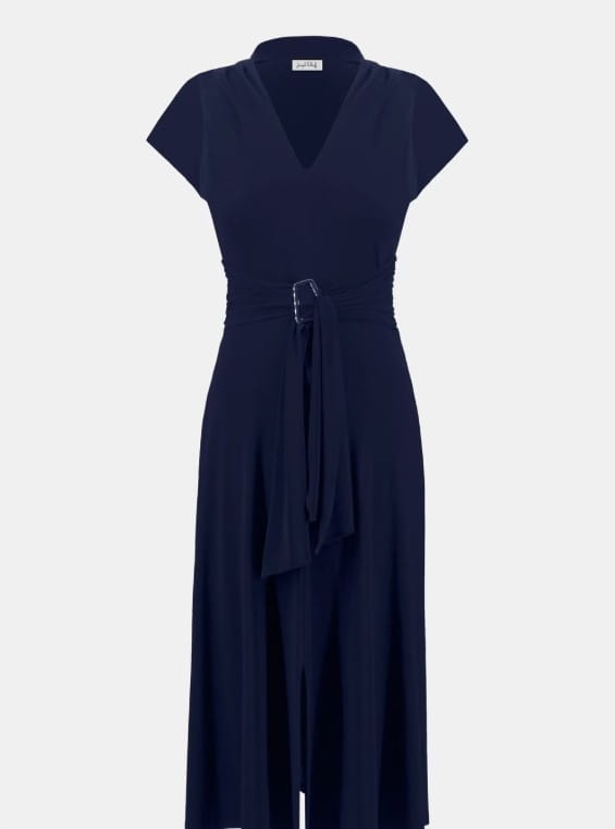 Joseph Ribkoff 252091 Sukienka z paskiem z klamrą dostępna w kolorze szafirowym i granatowym.